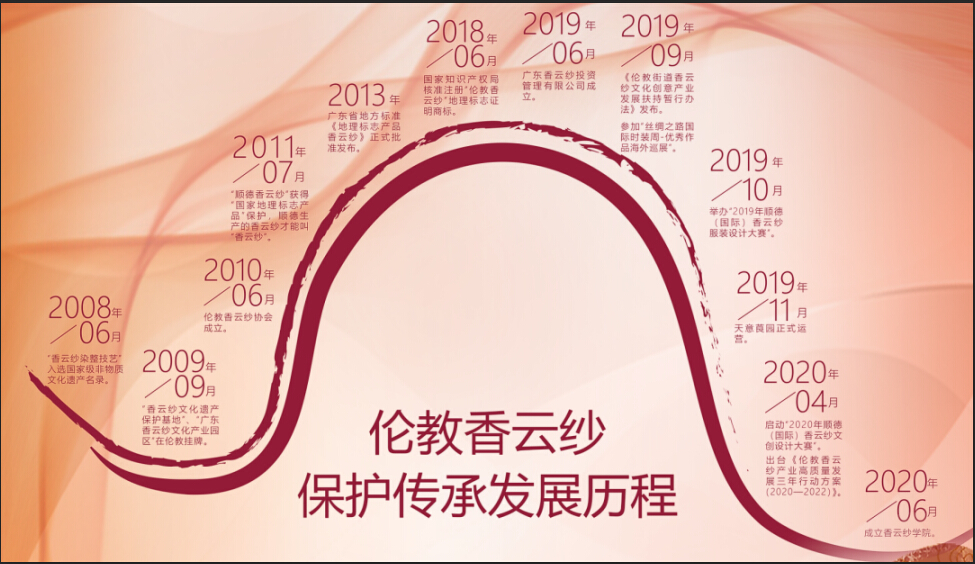 回顾近年的香云纱发展历程,作为香云纱原产地,伦教党委政府高度重视香云纱的保护传承与发展,从未停止脚步。