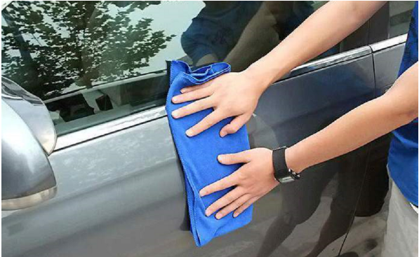 (▲洗干净爱车后,车主用车海洋专用洗车毛巾擦车)