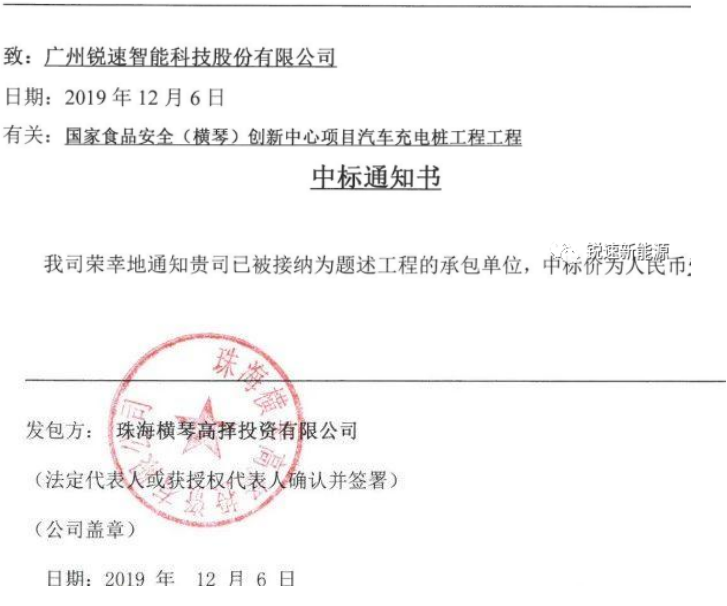 锐速智能中标国家食品安全(横琴)创新中心充电桩项目