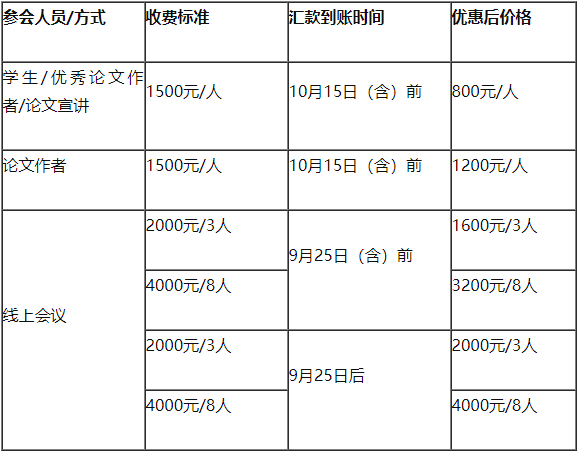 学生/优秀论文作者/论文宣讲、论文作者以及线上会议收费标准及优惠如下: