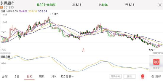截至10月16日,永辉超市股份有限公司(601933;下简称:永辉超市)报收8.12元/每股。而今年4月28日,其股价一度冲到高位,达11.07元/股。相比于今年4月底的高位,近半年时间,永辉超市股价下跌近30%。