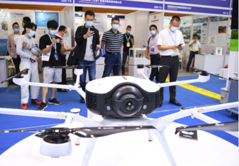 10月19日,与会者在观看大会展出的氢动力多旋翼无人机。当日,2020联合国开发计划署氢能产业大会在广东佛山开幕。大会以“发展绿色氢能、提振世界经济”为主题,将举办多场主题论坛,围绕燃料电池技术、氢能技术与应用、政策标准、氢安全等展开深入研讨,为国内外氢能及燃料电池产业搭建深度交流平台。(来源: 经济参考报)