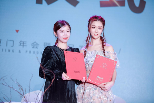 现场举行签约仪式,薛凯琪正式成为芯呵护卫生巾的形象代言人。