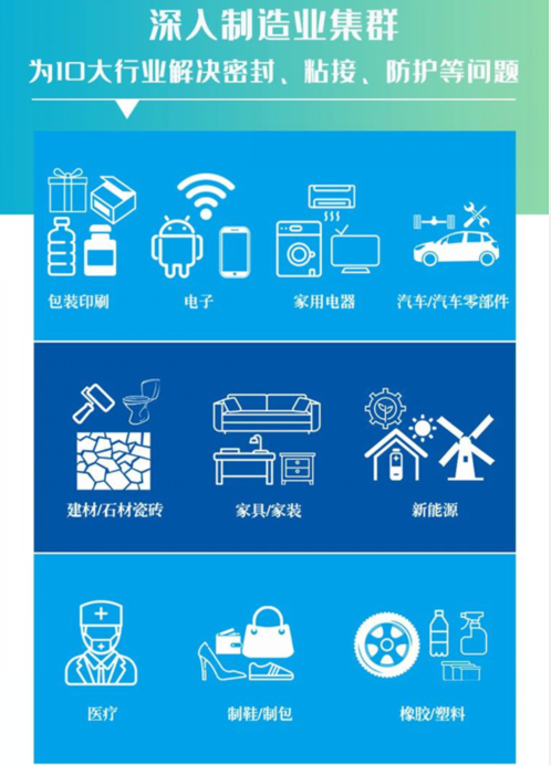 随着内循环趋势的大流行,内需市场将进一步扩大,国内制造业也将迎来新的发展契机。作为工业的“调味剂”,胶粘剂在众多行业的发展中起着至关重要的作用。华南地区作为中国活跃的制造业聚集地,对于高性能、环保胶粘密封解决方案的需求将成倍递增。尤其“新基建”、半导体与5G产业的迅猛突进,将为5G手机、3C电子、光电产业、人工智能、智能汽车、智慧医疗、智慧工厂、VR/AR、无线充电、生物识别、工业互联网、物联网等领域迎来巨大市场空间,将推动新兴行业配套胶粘/密封产品、高性能胶带/薄膜产品及相关高分子新材料井喷式发展。