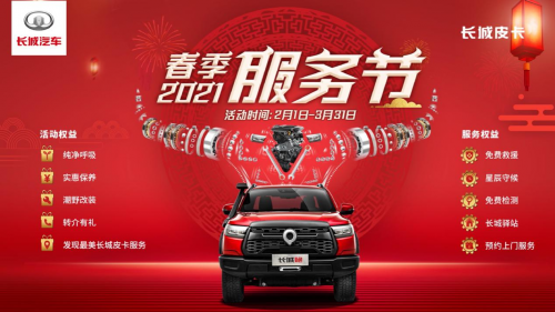 春节期间,为保障用户安全出行,长城皮卡服务节还开展多项无忧服务,让你安心过大年。