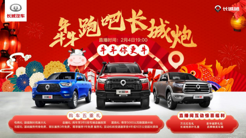 2月4日19点,长城皮卡高层领导将用直播拜年的方式,,在驭炮而行APP和抖音平台,为“皮卡人”送去暖心又惊喜的新春祝福。