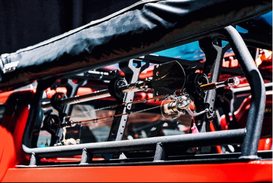 野钓炮将货箱改装为滑轮抽屉式隔断储物仓,可将渔具和鱼获分类放置,告别鱼线缠绕和泥水横流;全覆盖式龙门架,设置大量拓展固定点,分门别类放置鱼竿、铁锹等物品;此外,龙门架的框架一直延伸到车顶,皮划艇等尺寸较大的户外装备可以通过固定组件安置在龙门架上方。