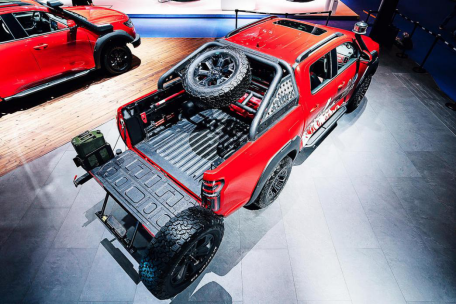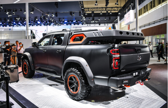 后斗设计了多用途自定义侧板置物架和滑动载重置物托盘,龙门架上可以安装各种型号的车顶帐篷,轮毂使用全球著名的雅泛迪轮毂搭配百路驰享有盛誉的KM3轮胎,适应更艰险的户外路况。长城炮越野皮卡穿越版最大的亮点是将各种装备固定,配备车顶行李架、车顶射灯、车头射灯等,便于恶劣路况的穿越、同时更换轮胎、轮毂,看起来更霸气。