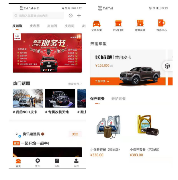 自2月1日起,长城皮卡正式开启2021春季服务节。为感恩回馈广大用户,服务节期间,在驭炮而行APP上购买保养、CN95空滤、改装配件等最低可享8折优惠,老客户转介绍新客户购买皮卡车,赠送一次基础保养材料(机油、机滤)。在线下,可享免费救援、免费检测、预约上门、预约进站时间延长、长城驿站等服务,诚意满满护航春节回家路。同时,在驭炮而行APP和抖音平台参与#发现最美长城皮卡服务#主题活动,还有机会赢取“炮弹”大礼。
