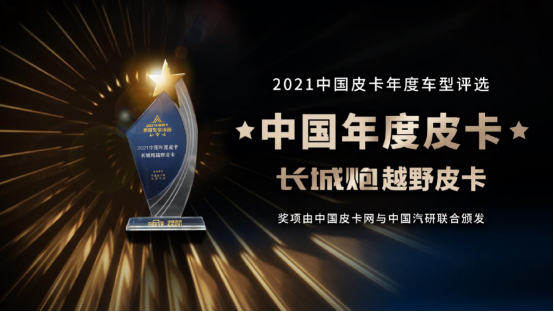 1月,凭借在产品力、销量以及品牌影响力等全方面的卓越表现,长城炮接连斩获大奖。在国内,长城炮越野皮卡斩获2021中国皮卡年度车型评选“中国年度皮卡”终极大奖;在国外,长城炮力压群雄,拿下素有智利汽车界“奥斯卡”之称的权威大奖——“年度最佳皮卡”,荣耀加冕,彰显产品硬实力。