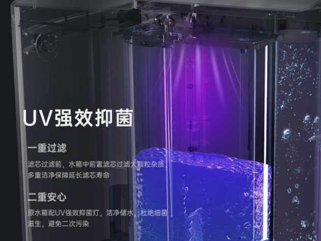 内置创新MAPS长效抑菌系统,抑菌率高达99.999%,有效抑制水箱里的细菌滋生,洁净储水,杜绝细菌滋生,避免了二次污染,多重洁净包装延长滤芯寿命。