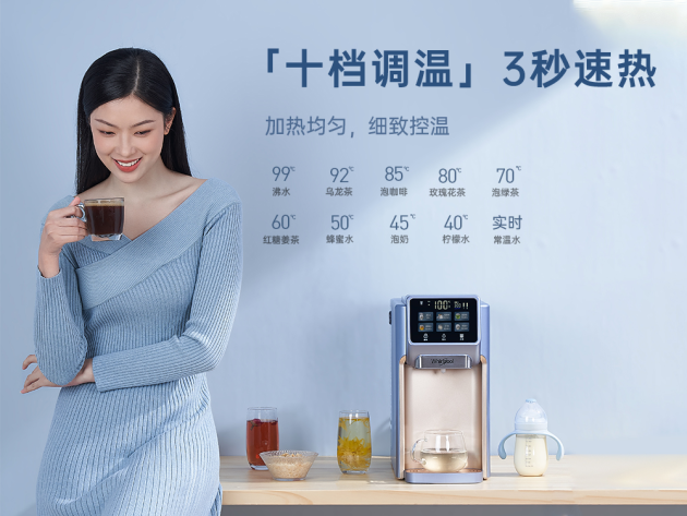 居家使用,爸妈半夜喝水也可以轻松上手;办公室使用,早上一杯咖啡,中午一杯奶茶,状态时刻在线;更有适合给宝宝泡奶的45℃水温档位,让新手妈妈起夜泡奶不再手忙脚乱。