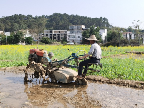 桂平市是广西重要的粮食种植基地之一,去年粮食种植面积达157.21万亩,粮食总产量55.37万吨。一大早,桂平市石咀镇治安村48岁的村民冼才贞赶到农田,驾驶耕地机忙着犁地,一上午要把3亩刚灌溉的农田翻犁一遍,为接下来的水稻育秧做好准备。“我泡种300多斤,现在已经开始育秧了。”冼才贞说,目前他种有150多亩水稻,今年准备扩种20亩稻田。