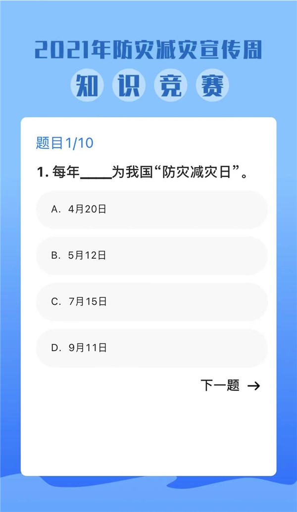 参与防灾减灾知识竞赛,赢取趣味知识大礼包