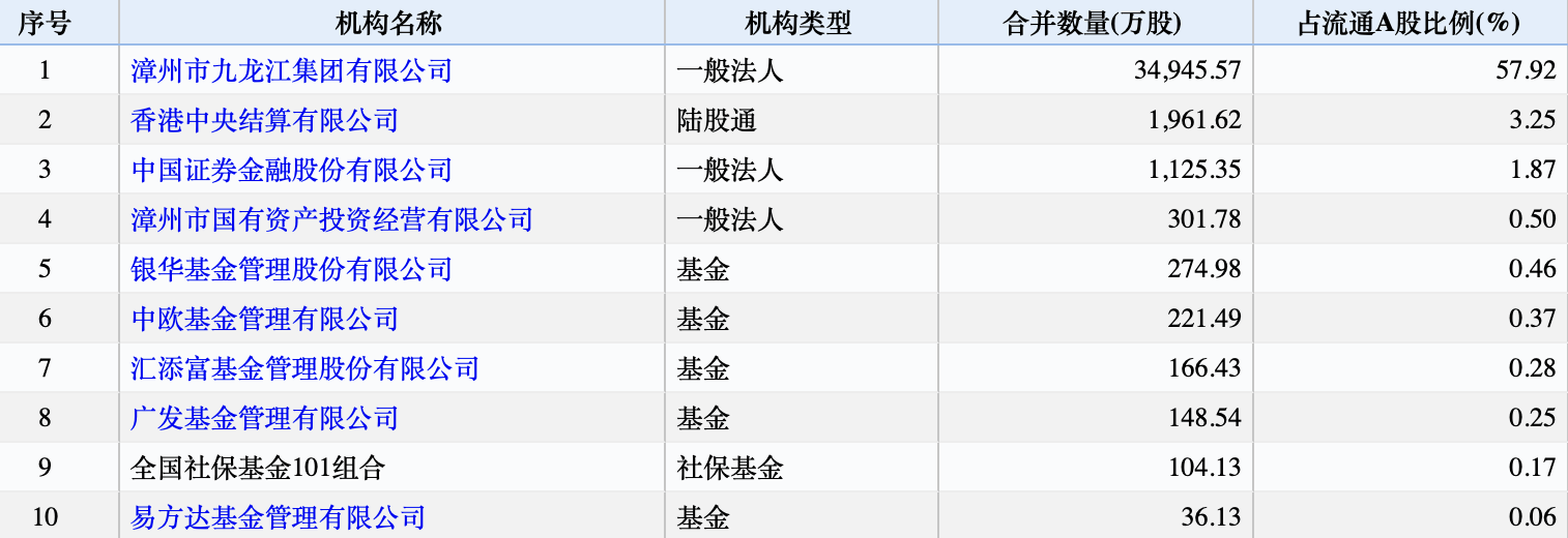 截至2021年一季度末前十大机构投资者持股情况。截图来源:Wind