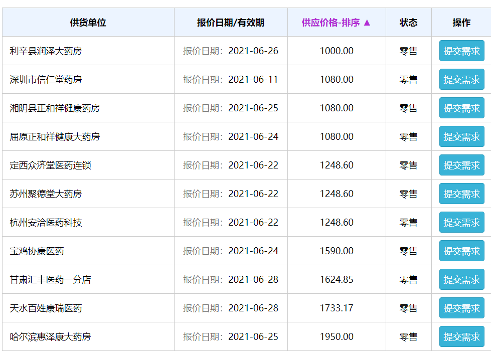 药品价格315网显示,一粒装的片仔癀全国各地的零售药房报价均在1000元以上,其中哈尔滨一家药房报价已经达到1950元/粒,而一年前的2020年6月片仔癀在该网站的最低成交单价仅为458元/粒。