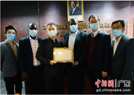 当仁中医赴乌干达驻穗总领事馆捐献抗疫物资。