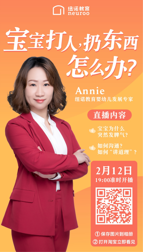 2月10-12日,纽诺教育与口碑淘宝“口碑1000小时公益”上开展了主题为《宅在家就能玩的亲子游戏》和《宝宝打人,扔东西怎么办》的2场直播课程,帮助父母深解读宝宝行为,理解宝宝行为中的“特殊含义”,让父母在家也能做到科学育儿。
