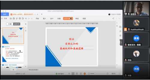 培训第一个环节里,彭金光律师通过基础权利义务;识别真相、防欺诈的基础逻辑;与创业相关的三部法律;认知公司和股东;认知股权几大部分给大家分享了就业创业需要认知的基础法律知识,并建议创业者认知股权、公司和股东,讲解了股权激励的内容和对应激励设置方式。