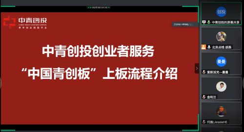 为了给创业项目提供更有效全面的服务,中青创投为各参赛项目提供「中国青创板」免费上板辅导福利。课上,中青创投运营部总监胡昊给参赛项目详细介绍了中国青创板的上板具体流程,并为大家详细解答了项目上板后,可以享受到的福利,例如:丰富的创业辅导课程;强大的银行、政府、企业对接资源;获得官方媒体报道资源等。
