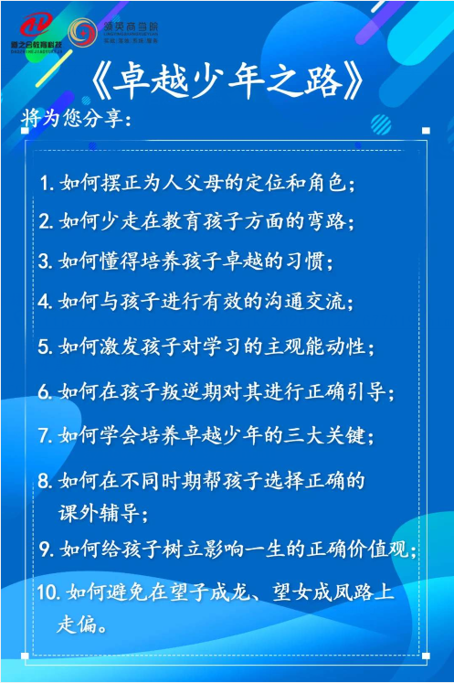 教育的竞争越来越激烈,很多时候孩子的成长不是光凭孩子聪不聪明,家长学历够不够高,家庭条件好不好来决定的。看的是哪些家长愿意用心思、肯花时间去学习如何领引和陪伴孩子成长。只有家长和孩子共同进步,孩子才能越来越优秀。