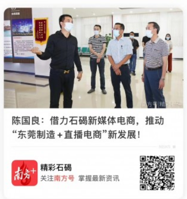 近日,东莞市委统战部副部长、市工商联党组书记陈国良、石碣镇委委员唐满全等一同来到桔洲·昌和盛大新媒体电商园参观调研。陈国良希望与昌和盛大加强合作对接,以其数字新媒体优势,扶助本地企业发展壮大,推动“东莞制造+直播电商”新发展。