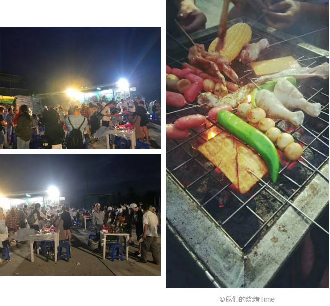 拿着自己捡来的“宝贝”,肚子也开始“咕咕”叫,在夜幕降临之际,烧烤时间到了。袅袅的炊烟,忙碌的身影随处可见。