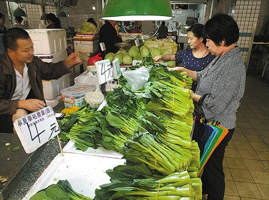 “宁夏菜心5元/斤,大白菜1.8元/斤。”16日,在莞城细村市场蔬菜档前,一位菜贩一面整理菜品,一面回答道,相比国庆期间,最近菜价还比较平稳。像宁夏菜心等畅销菜,近半月来一直维持在5-6元/斤上下。