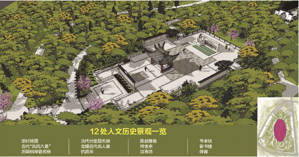 值得一提的是,北栅公园将依托北栅社区丰厚的人文历史,重建5个历史文化景观,新建7个历史人文景观,展示北栅800多年的灿烂文化,丰富人文内涵。