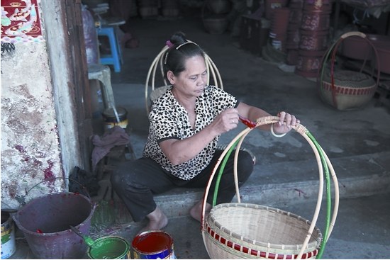 婚庆旺季桥头镇传统婚庆用品“斗谷篮”抢手