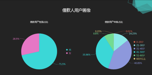 根据报告显示,用户年龄分布从18至60岁不等,其中70/80后为借款主力军;在性别分布上,虽然借款男性用户占到71.5%,同时女性用户占比在不断增长,互联网金融变革时代下,“她经济”正在崛起。
