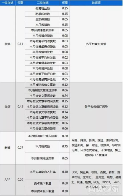 互金平台移动影响力榜单数据源、指标及权重