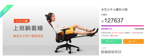 小午小睡办公椅亮相京东众筹,仅一小时完成筹额目标