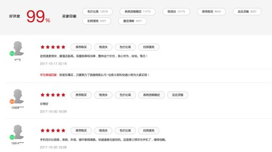(图:荣耀畅玩7X在华为商城好评度)