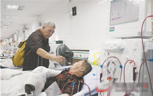 王锦章透析过程要4个小时,中间还要喂一次饭,唐耀坤全程不敢离开半步。医生问他为什么不请护工,他说:“你看看哪个护工够我服务周到。”