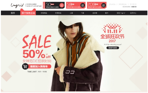 那么究竟是何方神圣让时尚造型师都如此的翘首期盼呢?小编强行的揭开了这个神秘面纱,原来Sofia瞄准的目标居然是来自日本的时尚潮牌Ungrid,“好一个心机girl”,小编忍不住揶揄Sofia的同时,却也被Ungrid在今年推出的双十一活动给深深吸引住了,“天猫旗舰店”“定金翻倍”“定金抵3倍”,面对这些关键词,小编只剩下了惊叹。