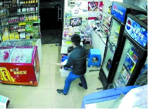 便利店里的监控视频显示,前日18时19分许,一名男子在便利店门口向里张望,当时店里只有一名女童在收银台附近整理香烟架。男子走进便利店,并在店内张望走动。