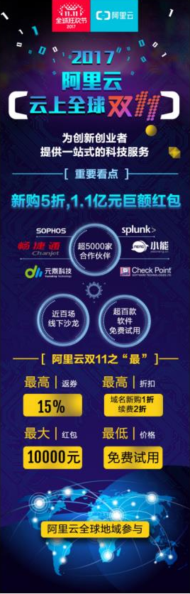 今年阿里云首次将“双11”模式推广至全球。全球9个境外节点香港、新加坡、马来西亚、日本、美东、美西、德国、迪拜及澳大利亚都参加今年“云上全球双11”狂欢节之中,首次购买上述地域的技术与产品,将获得半价优惠。