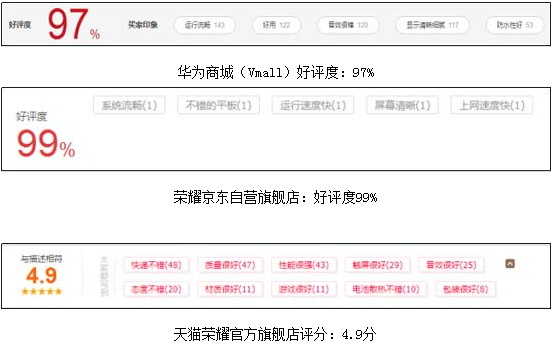 作为荣耀首款防水影音平板,荣耀Waterplay自10月24日在华为商城(vmall)、京东、天猫三大平台开售以来,不仅收获大量迷妹迷弟销量强劲,也积累了超高的评价和好口碑。截止目前,荣耀Waterplay在华为商城(Vmall)好评度97%、荣耀京东自营店好评度99%、天猫荣耀官方旗舰店评分4.9分的优异成绩。