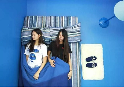 蓝色房间因为有张床,让人好想睡觉的说~和闺蜜躺在这里,一出小清新“百合”大戏就来感觉了~
