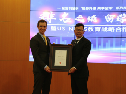 U.S. News教育渠道市场总监Charlie Meggy为金吉列留学常务副总裁郑应文先生颁发授权书