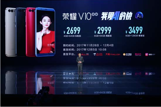 荣耀V10搭载人工智能芯片 打造专业游戏旗舰机售价2699元起
