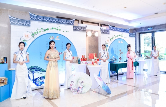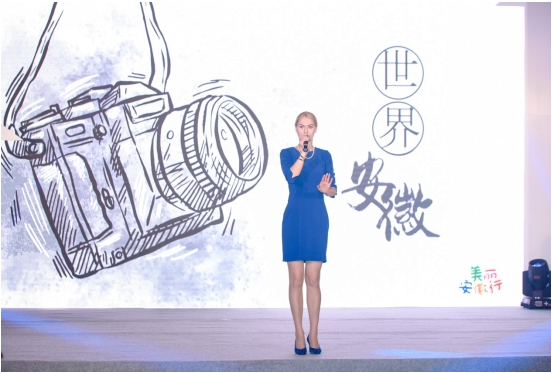 走进会场, 现场播放的安徽旅游宣传片映入眼帘,黄山、皖南古村落、九华山、天柱山、八里河等各路美景竞相斗艳。安徽省黄梅戏表演者现场献上了婉转悠扬的黄梅戏选段。安徽省各地名小吃、名茶、土特产也给在场的各位嘉宾带来了别样的享受。