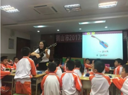 本次参赛选手共有17名,是来自鹤山各学校的优秀教师。比赛内容以抽签形式选定,我校苏欢老师抽取的教材为小学四年级第六单元《Toys》一课。只有短短几天的时间准备,正式比赛的现场,这节课以精美的教具制作,巧妙的教学构思以及苏老师活泼生动的课堂感染力,牢牢牵住了孩子的心,让孩子们在欢乐和谐的氛围中掌握了本课的重点词汇和句型,赢得了现场评委的高度赞赏。