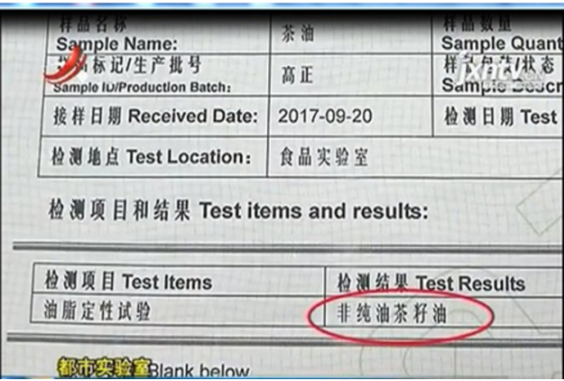 9月下旬,江西二套都市现场报道了市面上山茶油掺假乱象,紧接着一段山茶油暗访视频在网上迅速传播。9月下旬,江西电视台《都市现场》栏目的《都市实验室》就市面上正在出售的山茶油进行了一次调查,5款山茶油被送往权威的检测部门进行检验对比,结果送检的产品中竟然全部为非纯山茶油。随后网友纷纷爆料表示,全国各地的山茶油都存在造假现象。