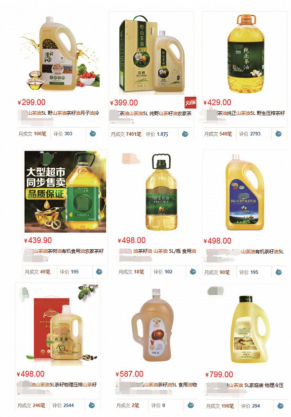 细心对比下,目前全国各大超市和天猫、京东等电子商务平台货架上销售的5L装山茶油价格从300左右元至800元左右不等,甚至网上销售的几个品牌的5L压榨山茶油还有200多元一瓶的。众所周知,2016、2017年油茶籽产量很低,土榨山茶油至少得60元以上一斤,而土榨山茶油没有经过精炼会存在众多安全隐患,是不允许上市销售的。土榨山茶油精炼得油率只有93%左右,即1斤土榨山茶油只能得到0.93斤精炼山茶油,加上人工工资、水电、辅料、设备折旧及包装材料,以5升装压榨茶油为例,即使按制造成本无毛利出厂销售,出厂价也接近650.00元/桶,出厂后还要经过批发经销、零售两道商业加价环节。