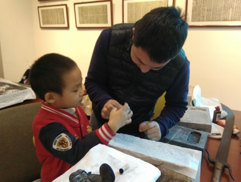 传习所提供馆藏的汉唐至明清的各类古代器物,供学员练习传拓技艺,涵盖造像、匾额、文字碑、墓志、古砚、画像砖、画像石、高浮雕石刻等。学员亲自上手拓印,真正感受与文物零距离。