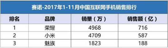 年轻的荣耀四周岁啦!四岁的荣耀虽然年纪小,实力却很不一般,在国内手机市场的激烈厮杀中,荣耀的成绩格外的亮眼,赛诺数据显示,2017年荣耀力压小米、魅族成为中国互联网手机份额第一,1-11月销量4968万台,销售额达716亿元,几乎是第二名小米和第三名魅族的销售额总和。