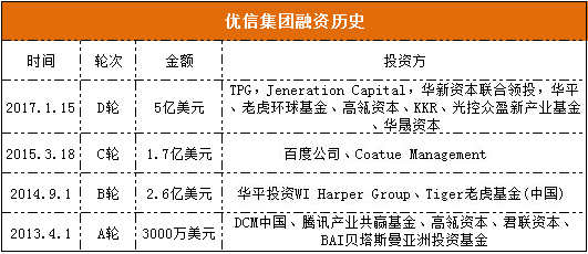 2014年9月和2015年3月,优信集团先后获得2.6亿美元的B轮融资和1.7亿美元的C轮融资。