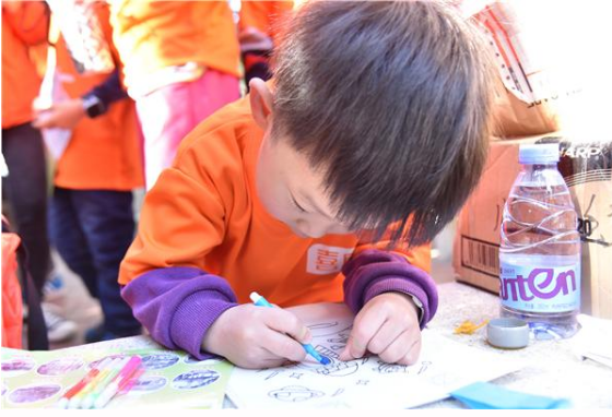 (现场的小朋友认真完成填充游戏,在创作中感受乐趣)